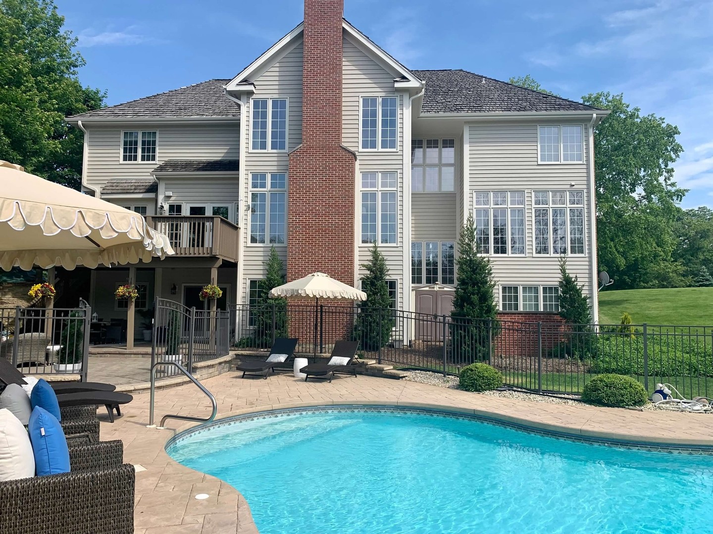 Tucked away on a serene 1.3+ acre lot, this exquisitely updated home is a private retreat designed for both relaxation and grand entertaining. Every inch has been thoughtfully reimagined with custom millwork, rich hardwood floors, soaring ceilings, and high-end finishes, creating a home that is as elegant as it is inviting. Step inside, and the sun-drenched two-story foyer welcomes you with breathtaking views of the resort-style backyard and shimmering in-ground pool. The showstopper? A breathtaking two-story great room welcomes you with skylights that flood the space with natural light, a cozy gas fireplace for added warmth, and a stylish wet bar designed for effortless entertaining. From here, the open layout seamlessly connects to the gourmet kitchen, breakfast room, and dining area, creating the perfect setting for gatherings both large and intimate. The fully renovated chef's kitchen is a dream, featuring quartz countertops, an island with seating, and top-of-the-line appliances. The breakfast room opens to a spacious deck, where you can sip your morning coffee while soaking in the beauty of the property. For work or quiet retreat, a private office with walls of windows makes working from home feel like a luxury. A stylish living room, chic powder room, and custom designed mudroom complete the main level. Upstairs, the primary suite is a true escape, offering a spa-like ensuite with a soaking tub, separate shower, and dual vanities. Three spacious secondary bedrooms, two additional full baths, and a huge bonus room provide endless possibilities for play, work, or relaxation. And then, there's the walk-out lower level-a haven for fun and entertainment. Luxury vinyl flooring flows throughout the open rec and game room, where a fireplace and wet bar set the scene for unforgettable gatherings. A fifth bedroom and full bath make for the perfect guest suite, while an exercise room, laundry, and ample storage complete this level. Outside, a paver patio leads to the spectacular in-ground pool with waterfall, creating your own personal oasis. A playset and trampoline add to the fun, making this home a place where memories are made. Ideally located, you can enjoy nearby preserves, hiking trails, and yet are just minutes from town, train, shopping, restaurants and top-rated D220 schools. If you're looking for refined luxury with a resort-style feel, this is the one. Welcome home!